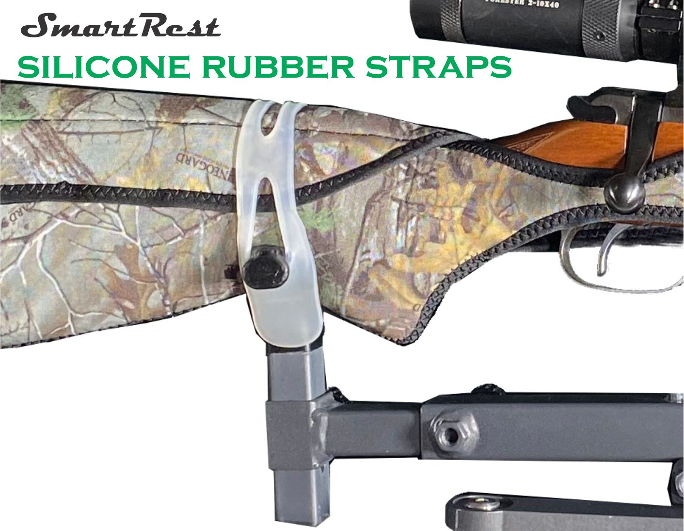 Note: The NEW Clear Silicone Straps is a strong, reliable silicone based tie down strap used on all SmartRest steel framed gun rests.