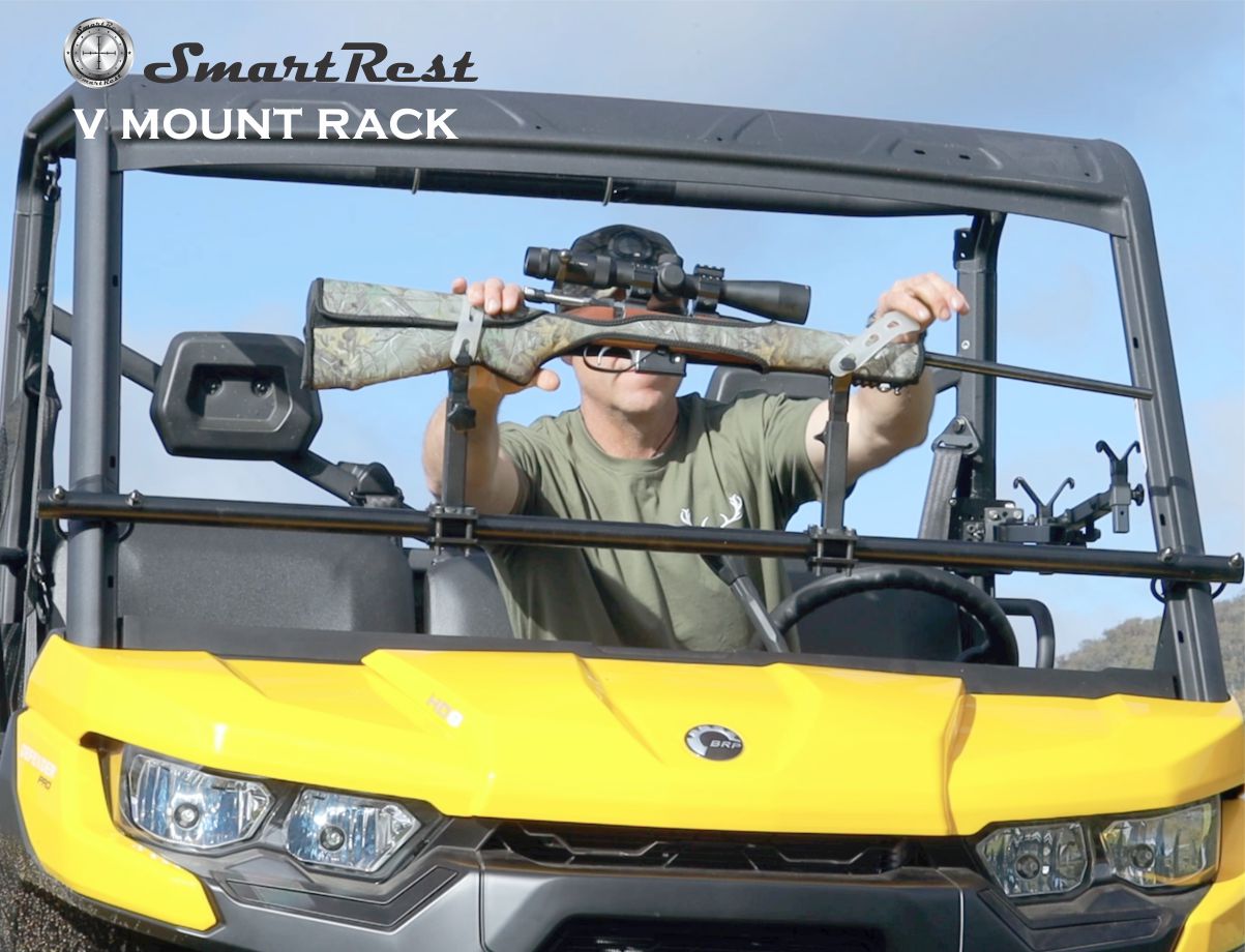 The V Mount Rack is a simple bolt on V shaped Gun Rack. Bolt on a pair of these adjustable V Racks directly on to he front or rear of any vehicle for a secure firearm, bow, and shovel holder.